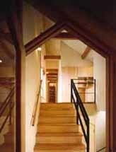 また、敷地の状況をできるだけ生かすため廊下を兼用する階段で半分ずつ移動する(7段)、スキップフロアーの構成となっている。