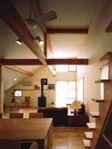2階の居間は北側斜線の制限ギリギリの個性的な空間。