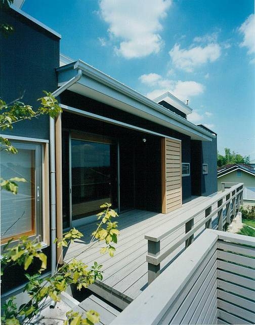デッキの窪んだ部分に雨戸を取り付けた。台風の時など植木鉢やジョウロなどを取り込んでおける。普段は雨戸がカーテン代わりにもなる。
