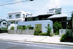 南道路に面した間口が広い恵まれた敷地に建つ2世帯住宅。中庭にする必然性は少ないが、